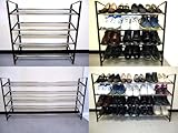 【S-6867BK】靴の量や 玄関 の広さに合わせて 伸縮 させて使える、便利な 伸縮自在 の★ 省スペース スライド式シューズラック 棚4段タイプ 【 ブラック 】★幅67.5~128×奥行21×高さ67.5cm 【紳士靴の収納目安12足~20足】【婦人靴の収納目安16足~28足】♪ スライド式 で伸縮自在! 斜め置きで スリム 設計!♪