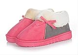 ぽかぽか ルーム シューズ 防滑 スリッパ (ピンク×グレー, S(23cm))